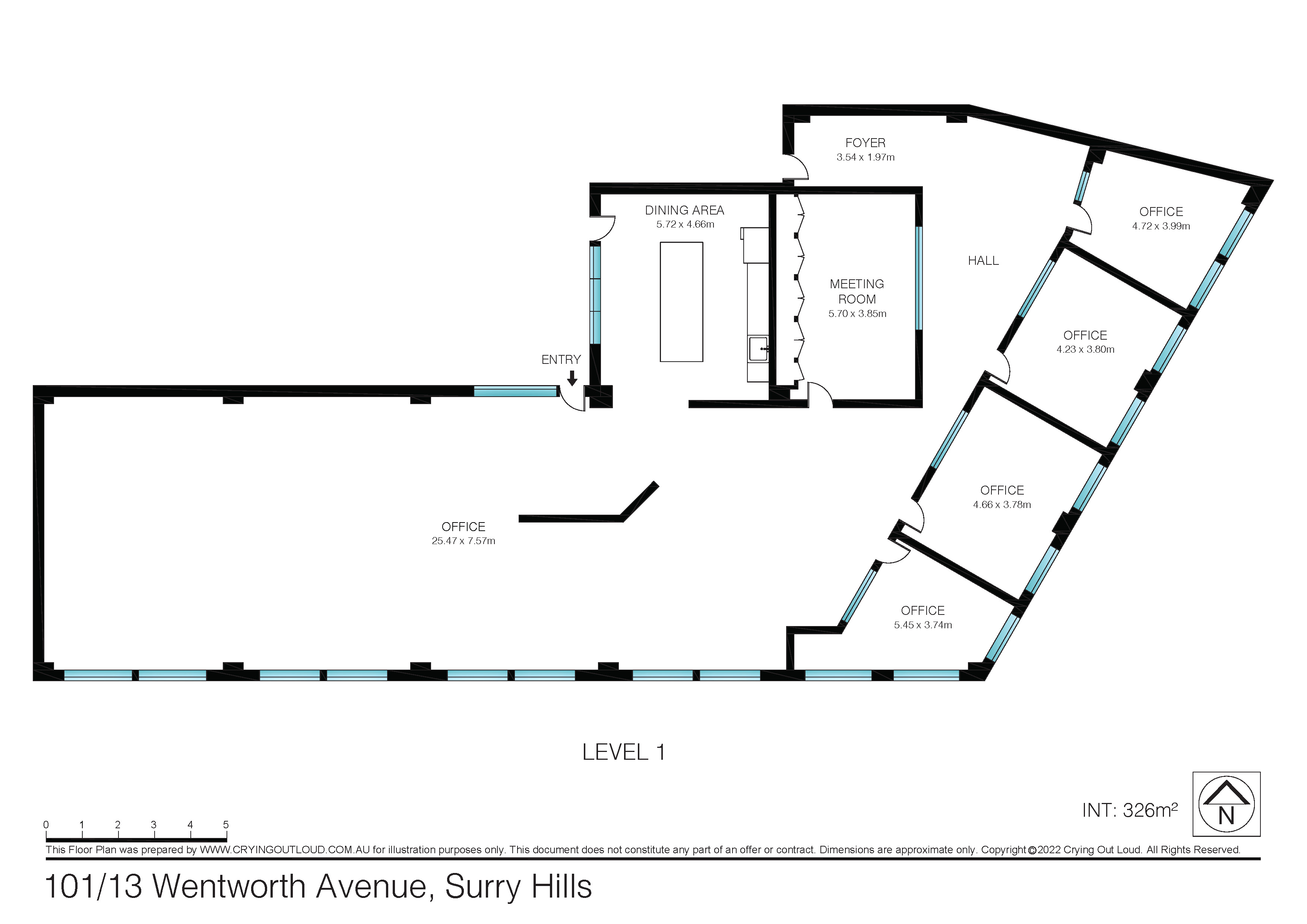 - 326sqm open plan office space on Level 1