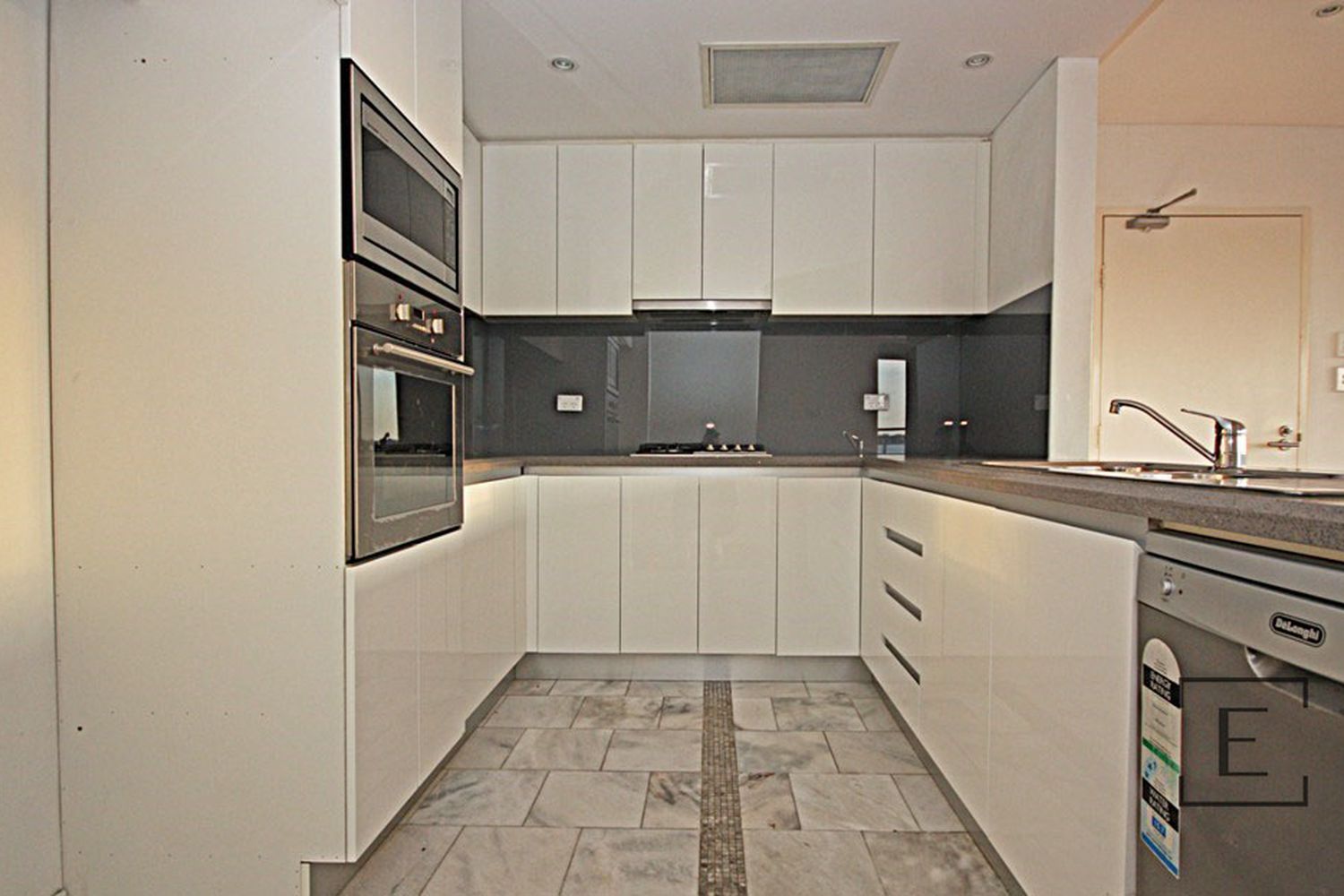 - Elegant kitchen with gas appliances and dishwasher.