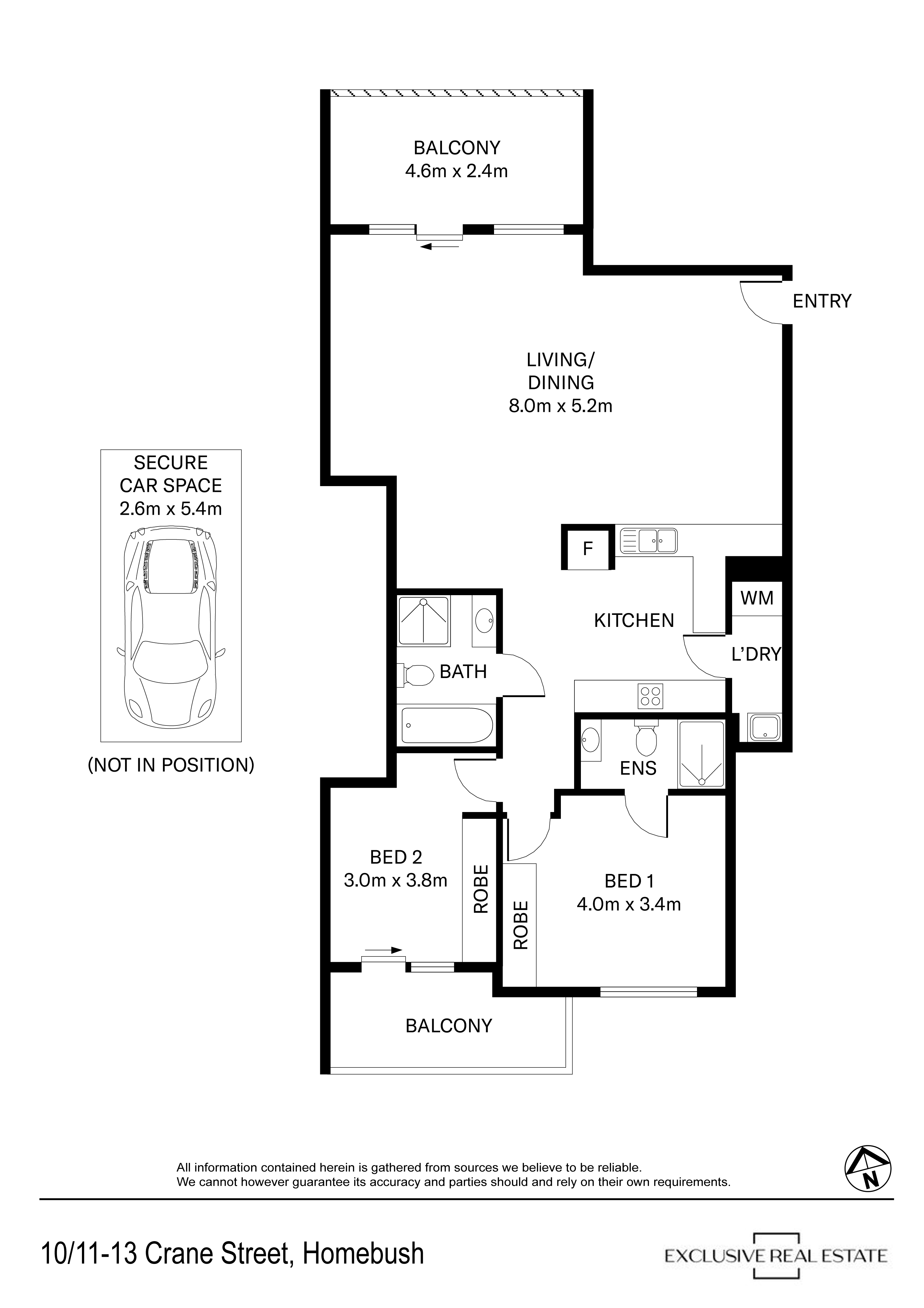 - Generously sized bedrooms, both with built-in robes; master with ensuite. Second bedroom with balcony access