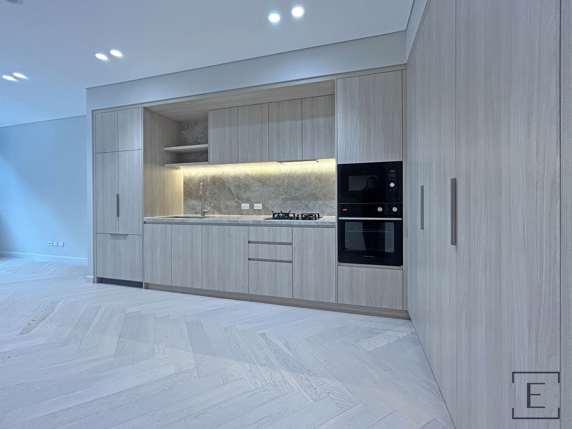 - Designer kitchen with stone benchtops, premium appliances and soft-close cabinetry. Includes intergated french door fridge and dishwasher